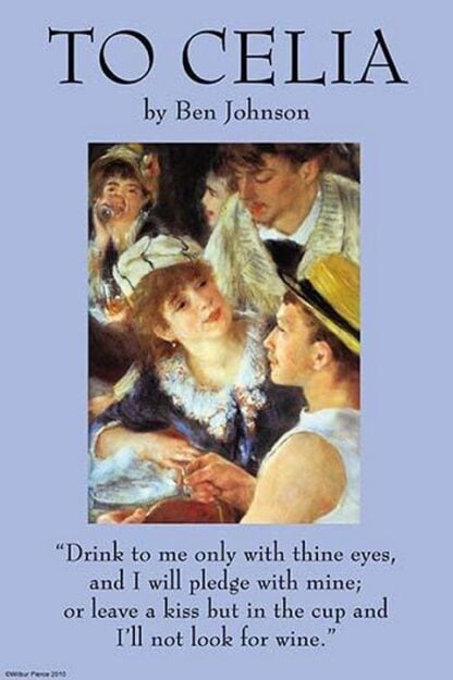 Jonson’s ‘Song: To Celia’ is a short monologue in which a lover addresses his lady in an effort to encourage her to express her love for him. Jonson includes conventional imagery, such as eyes, roses, and wine, but employs them in inventive ways. As a result, the poem becomes a lively, expressive song extolling the immortality of love. John Addington Symonds, in his 1886 study of Jonson, calls the poem a masterpiece in its ‘purely lyric composition’ and individuality. He concludes that Jonson’s lyrics ‘struck the key-note of the seventeenth century.’ Illustrated by Renoir’s a detail from Renoir’s ‘Lunch on the Boat’1616/England