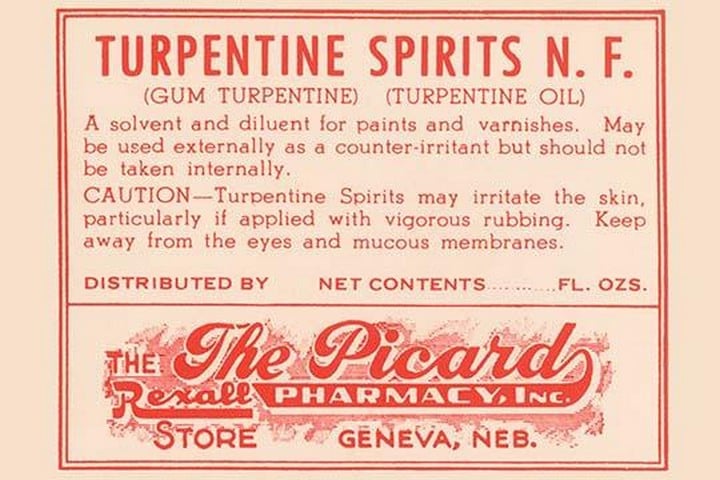 A 1920’s pharmacy bottle label. Many of these were quack cures and the main ingredient often was alcohol.1920/USA