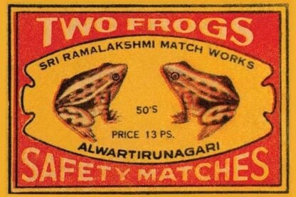 Thousands of companies manufactured matches worldwide and used a variety of fancy labels to make their brand stand out. This version used two frogs as their brand recognition.Unknown Date/India