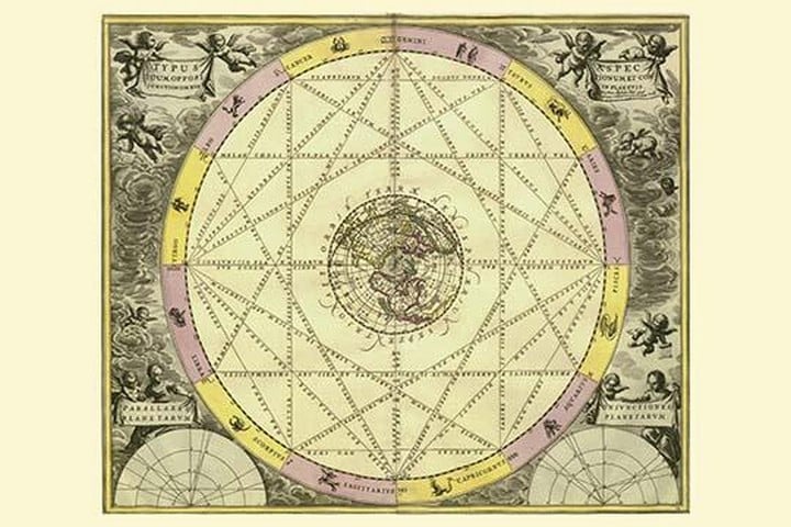 Star atlas published by Johannes Janssonius. Prints depict the world systems of Claudius Ptolemy, Nicolaus Copernicus and Tycho Brahe. Also star maps of the classical and Christian constellations introduced by Julius Schiller in his Coelum stellatum christianum of 1627.1660/Dutch-German