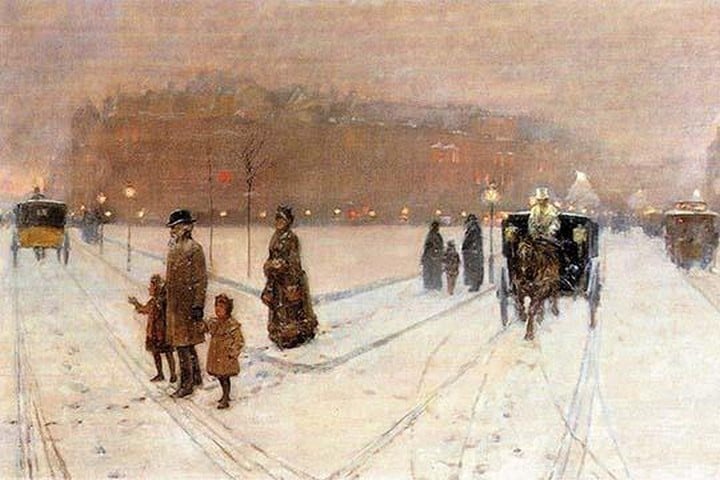 Carriages along a French Boulevard with a Father and Mother cross with Children1895/USA