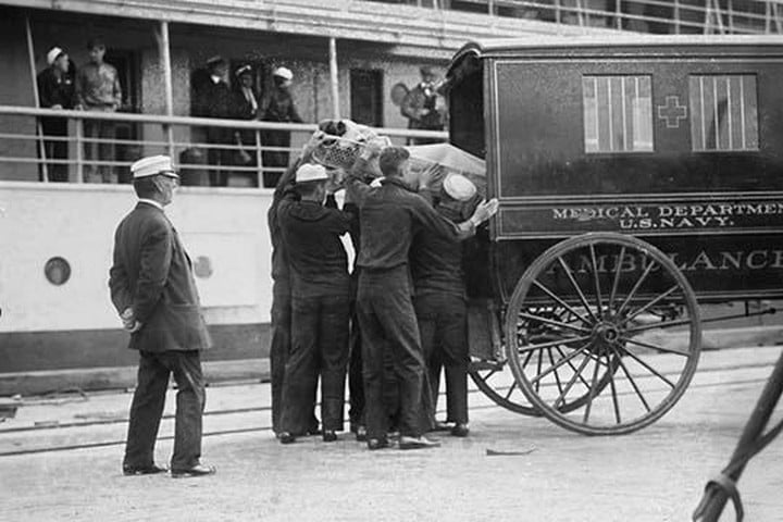 Surgeon General Investigates Ill Treated Sick Sailors from the Hospital Ship ‘Solace’-Seamen taken off by Horse Drawn Ambulance1917/USA