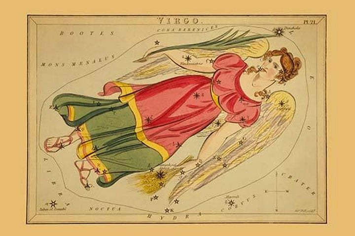 Astronomical chart showing a winged virgin holding wheat in her left hand and a lily in her right hand forming the constellation. Jehoshaphat Aspin, an American artist active in the 18th and 19th centuries, made significant contributions to both art and literature. One of his notable works is the “Familiar Treatise on Astronomy” (1825), which he authored. This book, published by Samuel Leigh in Britain, explains the general phenomena of celestial bodies through etchings, engravings, and hand coloring. Aspin’s illustrations provide insights into the cosmos, bridging scientific knowledge and artistic expression. Additionally, Aspin delved into children’s literature, geography, and history. His primary work, “Cosmorama: A View of the Costumes and Peculiarities of All Nations”, explored cultural and geographical connections across disparate peoples. This hand-colored engraved book, published by J. Harris in London around 1826, showcased costumes and customs from around the world. Aspin’s multidisciplinary approach left a lasting impact on both scientific and artistic realms.