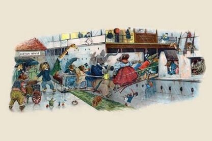The next thing was getting on board; The wind it blew and the rain it poured, And, Oh! the dismay, when the bridge gave way, and several tumbled in, they say.’ The Animals Trip to the Sea was a children’s book from the turn of the century. It was a tale of adventure for anthropomorphic animals written by Clifton Bingham and illustrated by G.H. Thompson.1900/USA / UK