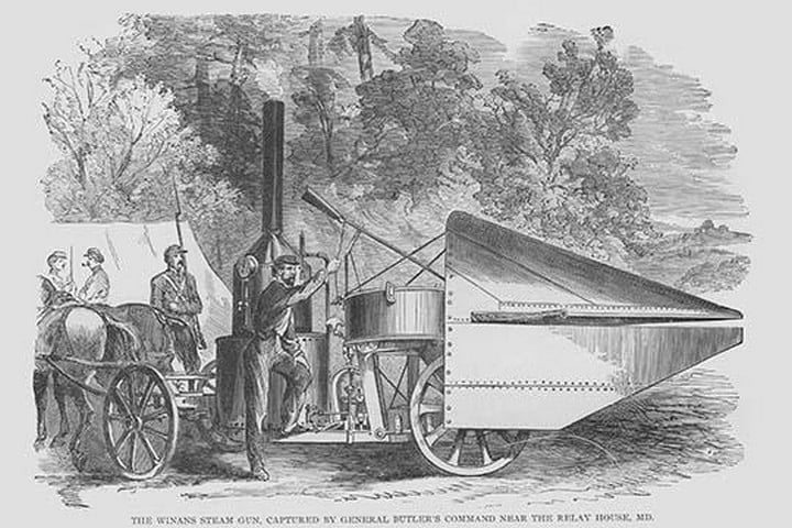 Frank Leslie was a prominent 19th-century American illustrator, publisher, and editor. He started as an illustrator for popular periodicals and established his own publishing company, “Frank Leslie’s Illustrated Newspaper,” which became one of the most successful and influential newspapers of its time. Leslie was also a pioneer in the use of photographs in journalism and established a photographic studio to create original images for his newspaper. He wrote several books and plays and was an important figure in the development of American media, shaping the way news was reported and disseminated. He died in 1880, leaving a lasting legacy.Winan’s Steam gun captured by Butler’s troopsUnknown Date/USA