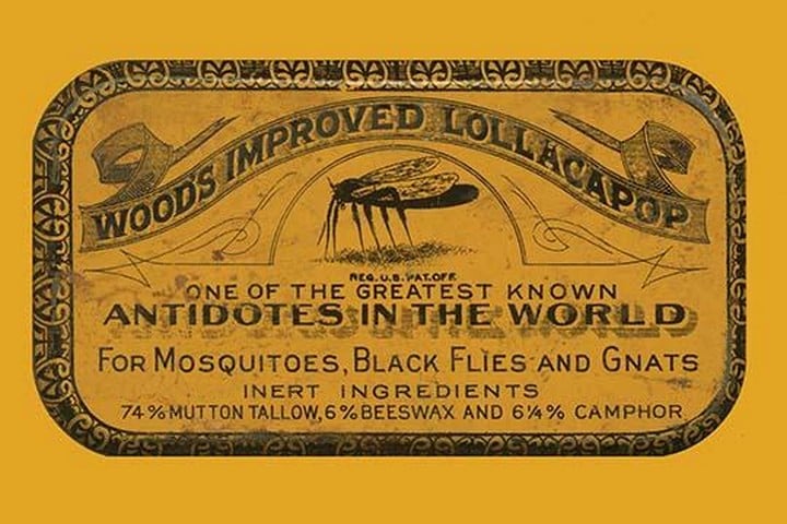 A tin of a wax to kill and chase away mosquitoes, black flies, and gnats. The product is mostly wax.Unknown Date/USA