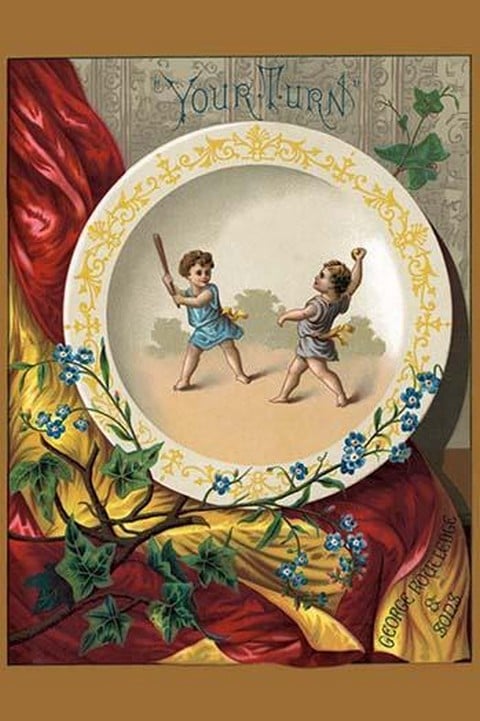 Decorative plate with two cherubs playing baseball.1882/USA