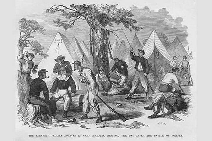 Frank Leslie was a prominent 19th-century American illustrator, publisher, and editor. He started as an illustrator for popular periodicals and established his own publishing company, “Frank Leslie’s Illustrated Newspaper,” which became one of the most successful and influential newspapers of its time. Leslie was also a pioneer in the use of photographs in journalism and established a photographic studio to create original images for his newspaper. He wrote several books and plays and was an important figure in the development of American media, shaping the way news was reported and disseminated. He died in 1880, leaving a lasting legacy.Zouaves get a shave in Camp McGinnis after Battle of BomneyUnknown Date/USA